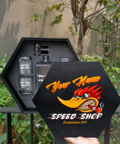 Hot Rod Garage Speed Shop Old School Mr Horsepower Personalized Whiskey Decanter Set