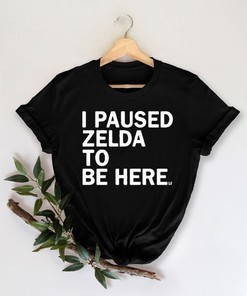 The shirt features a simple design with the words “I Paused Zelda To Be Here” printed on the front. This design is both stylish and eye-catching, and it’s sure to start a conversation.