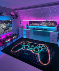 Upgrade your game room with the Neon Lights Effect Game Controller Design Area Rug today and take your gaming experience to the next level. Order now and enjoy the fun and functionality of this awesome rug!