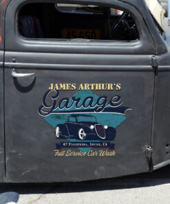 Personalized Hot Rod Garage Shop Blue Vinyl Wrap Sticker