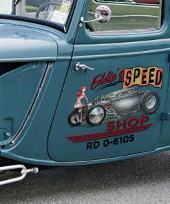 Personalized Hot Rod Pinup Girl Speed Shop Garage Vinyl Wrap Sticker