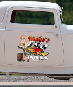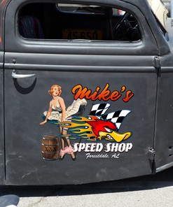 Personalized Hot Rod Shop Mr Horsepower Pin Up Girl Sticker