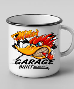 This coffee mug is the perfect gift for any hot rod or kustom kulture enthusiast! It features a woodpecker sitting atop a Mr Horsepower hotrod, with the text “Kustom Kultrure” below. This mug is microwave and dishwasher safe, and can be personalized with a name or message.