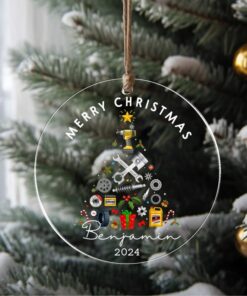 Personalized Mechanic Ornament 2024 – Custom Garage Xmas Decor for Auto Repair Shop