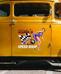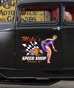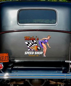Personalized Pin Up Girl Hot Rod Shop Mr Horsepower Sticker