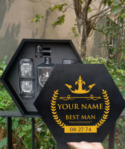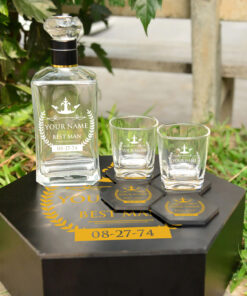 Celebrate your best man in style with our Personalized Whiskey Decanter Set, the perfect gift for showing appreciation on your big day. This premium set includes a custom-engraved decanter and matching glasses, designed to add a personal touch with names, dates, or special messages. Ideal for groomsmen or best man gifts, this elegant whiskey set combines sophistication and sentiment, making it a memorable keepsake. Elevate any home bar while offering a unique and thoughtful gift that honors your best man’s support with this personalized decanter set.