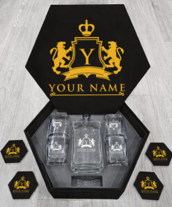Upgrade your home bar with our Personalized Whiskey Decanter Set, a perfect blend of style and customization. This premium set includes a beautifully crafted decanter and matching glasses, all customizable with names, dates, or special messages. Ideal for whiskey enthusiasts, it adds a personal touch to every pour and makes an unforgettable gift for birthdays, weddings, anniversaries, or groomsmen. Combining elegance and functionality, this personalized whiskey decanter set is designed to impress, making it a standout piece for any occasion or celebration.