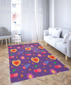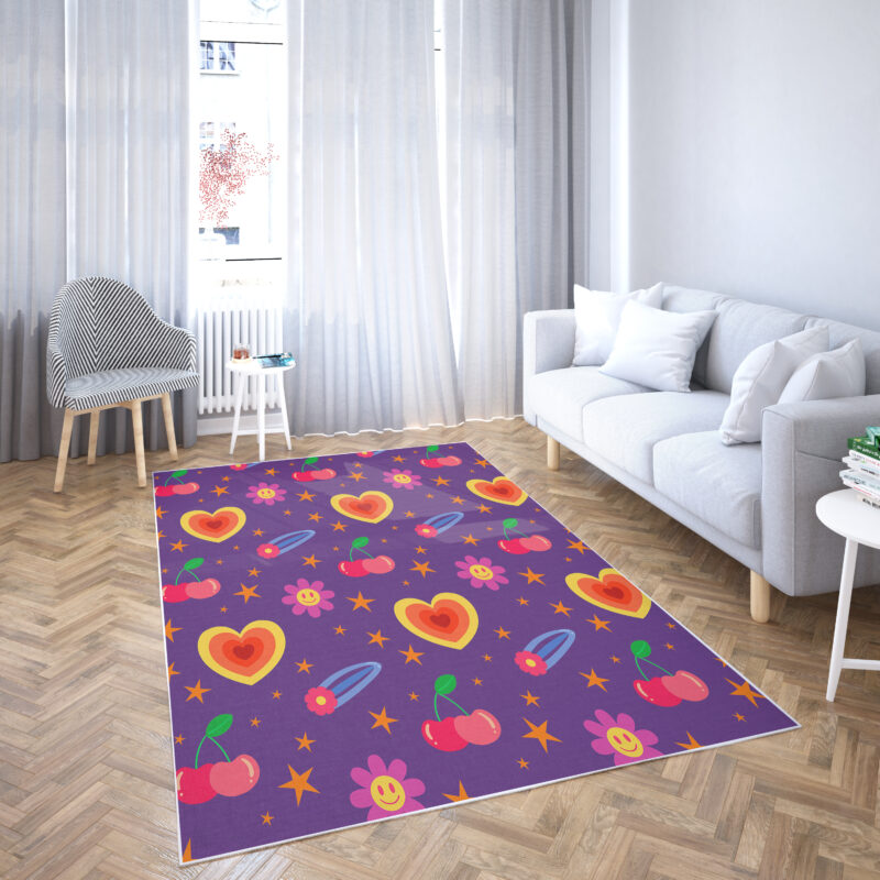 This Y2K rug is perfect for kids’ bedrooms and playgrounds. Encourages your child’s imagination with the heart and fruit pattern on purple background. Kids will love the fun and girly designs on this rug. It’s also a great addition to any room, as it will add character and patterns to any wall space. It’s soft, comfortable to walk on, and perfect for providing a calming environment.