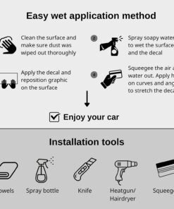 - Easy To Install: The installation will be a piece of cake. Simply slowly peeling off, spray water to wet the decal and the automotive surface (to reposition easily), then apply the decal to the surface.