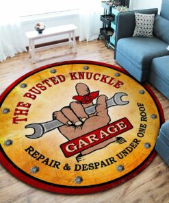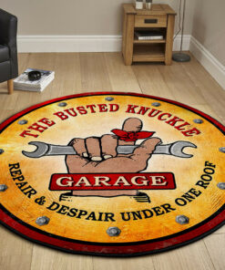 Personalize your workspace with our custom area rug. The Busted Knuckle Garage Repair And Despair Under One Roof Hot Rod Round Rug is also a beautiful way to showcase your unique personality. Moreover, it is one of the easiest ways to personalize your home decor. You can mix and match sizes to create your own family’s room or give it as a gift to be enjoyed for years to come. In addition, this high-quality area rug does enhance the look and feel of every room in your home or office whether it’s the living room or bedroom. The modern touch gives the room an exquisite atmosphere. Just imagine walking into your living space or workspace with a fabulous rug on the floor!